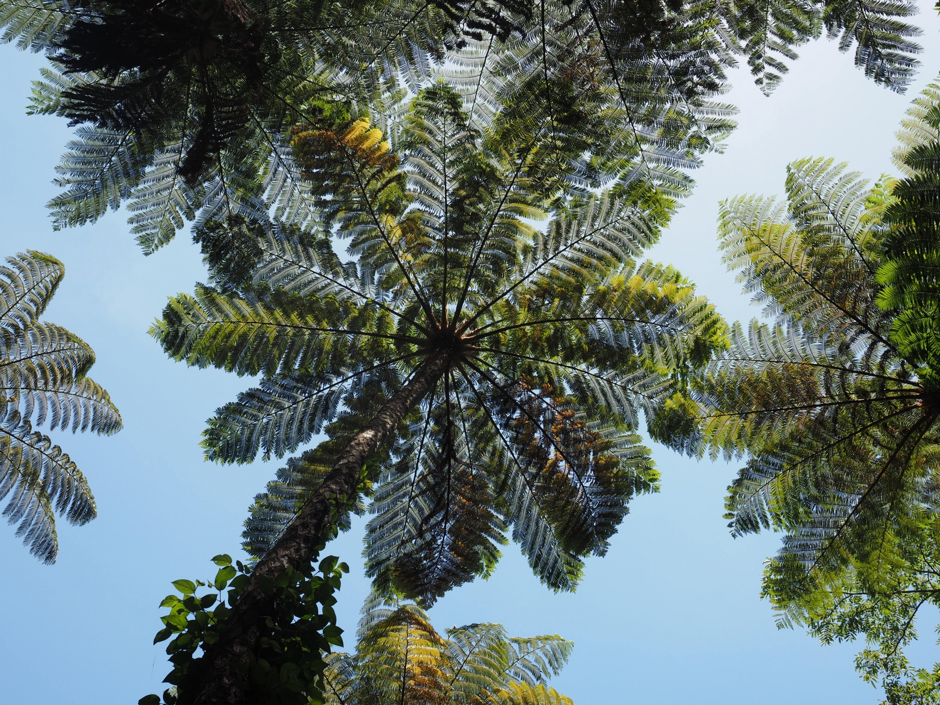 世界自然遺産にも登録された奄美大島の森を象徴する原生林。巨大なヒカゲヘゴの葉が傘のように広がり、空を覆い尽くす光景は「太古の森」そのもの。木々の間から差し込む光の筋(光芒)を捉えることができれば、非常に神秘的な作品になります。整備された歩道がありながらも、一歩足を踏み入れれば360度深い緑に囲まれるため、どこを切り取っても圧倒的な密度感のある緑の世界を撮影できるのが魅力です。