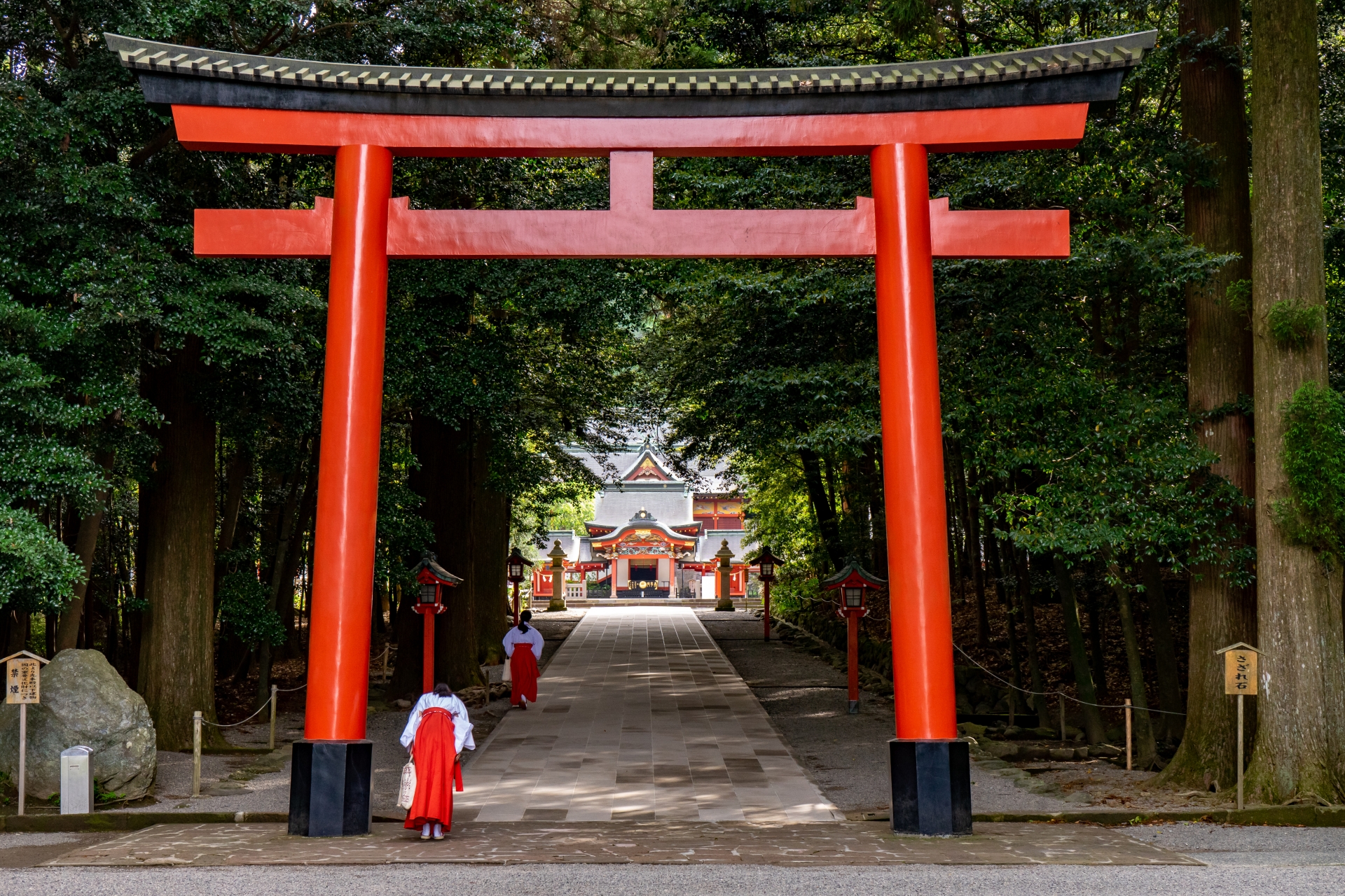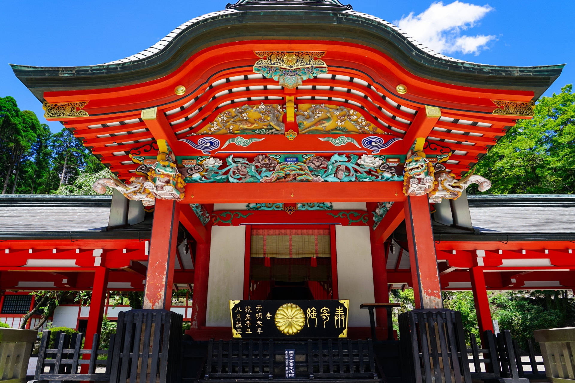 - 霧島連山の麓に鎮座する、南九州最大のパワースポットの一つ。荘厳な朱塗りの社殿と、広大な境内の豊かな緑が調和し、厳かな雰囲気が漂います。特に、社殿の鮮やかな朱色と、青空や新緑のコントラストは、写真に映える美しさです。歴史を感じさせる鳥居や石段、そして神社の荘厳な雰囲気を活かし、日本の伝統美と神聖さを感じさせる写真を撮ることができます。