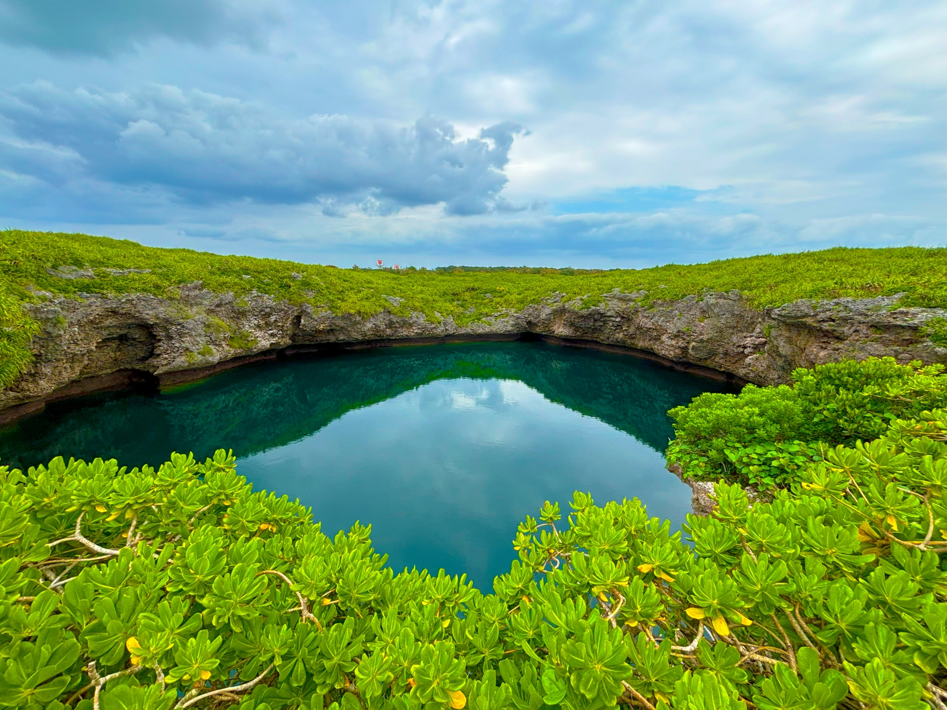 - 下地島にある、底で海とつながっている二つの巨大な円形の池。水深が深く、吸い込まれるような濃いコバルトブルーの水面は独特の威厳を放っています。遊歩道が整備されており、池のスケール感を出すには広角レンズがおすすめ。伝説が残る場所ならではの、少し不思議で神聖な空気感を閉じ込めた一枚が撮れます。