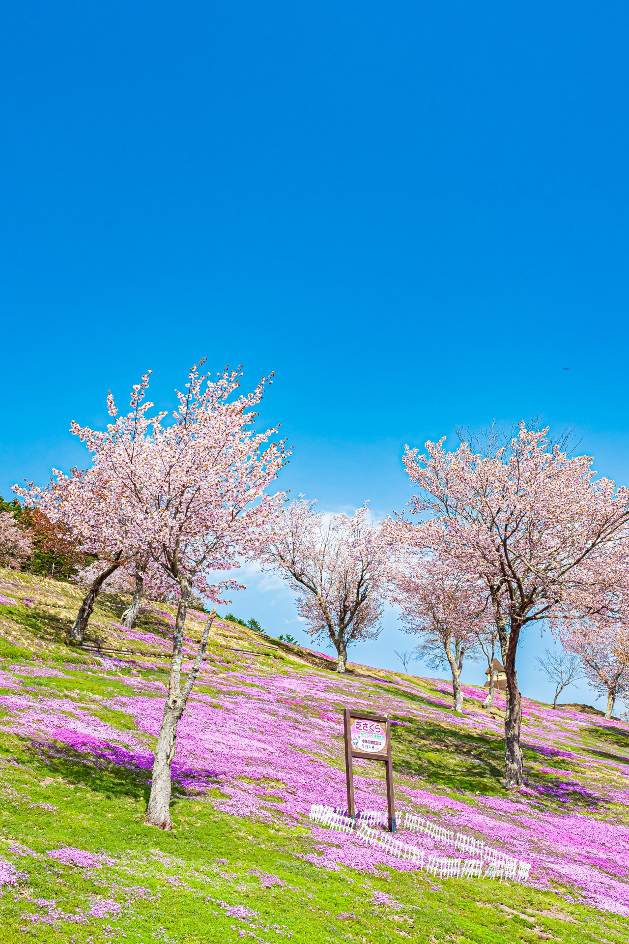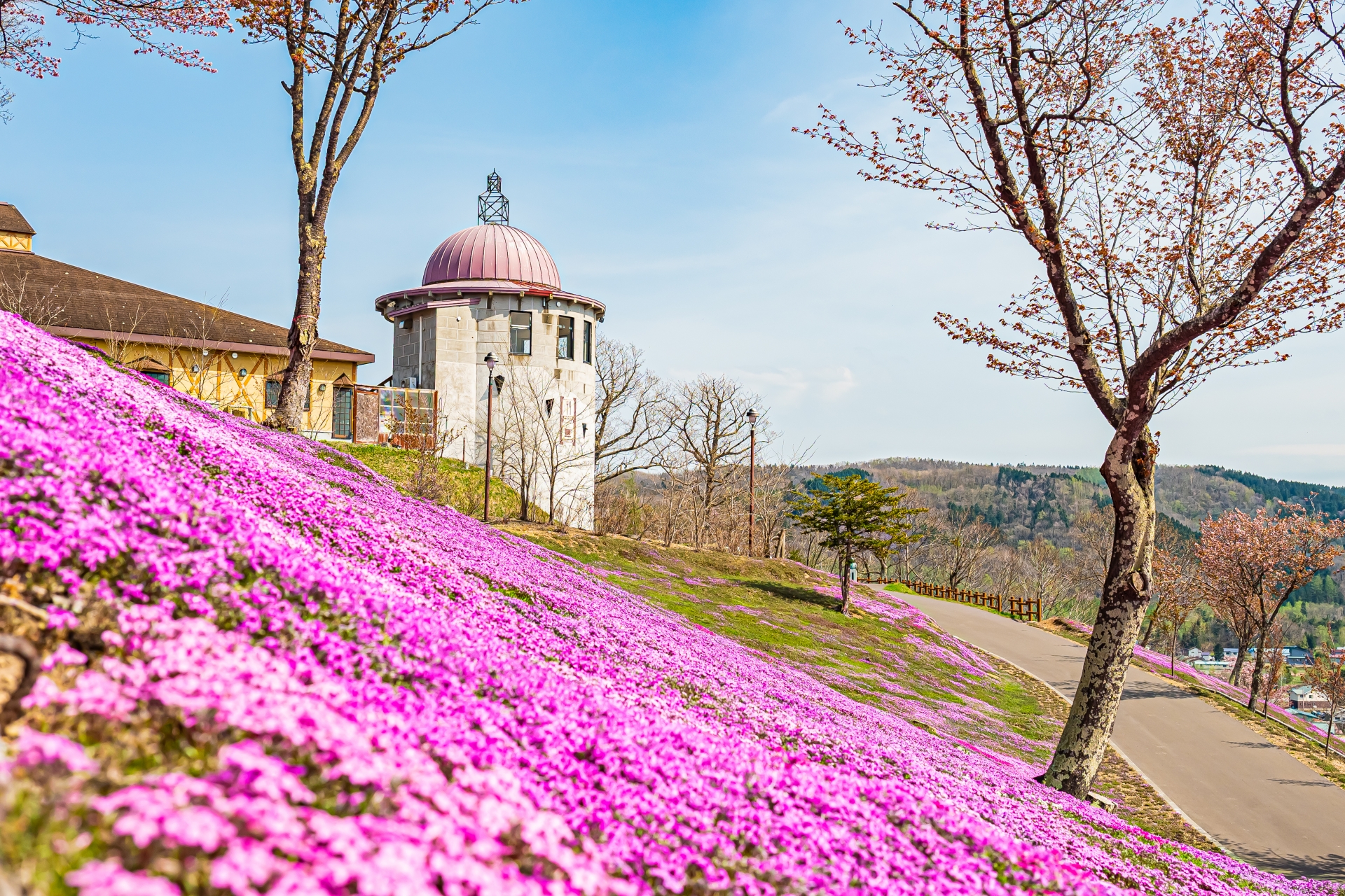 - 北海道紋別郡滝上町にある、小高い丘一面がピンクや紫の芝桜で埋め尽くされる公園。例年5月上旬から6月上旬にかけて、視界いっぱいに広がる芝桜の絨毯と甘い香りが、訪れる人を魅了します。公園の斜面を埋め尽くす芝桜の色彩と、遠景の緑のコントラストは、まるで絵画のような華やかさです。春の訪れを告げる、色彩豊かでロマンチックな写真を残したい方に最適なフォトスポットです。